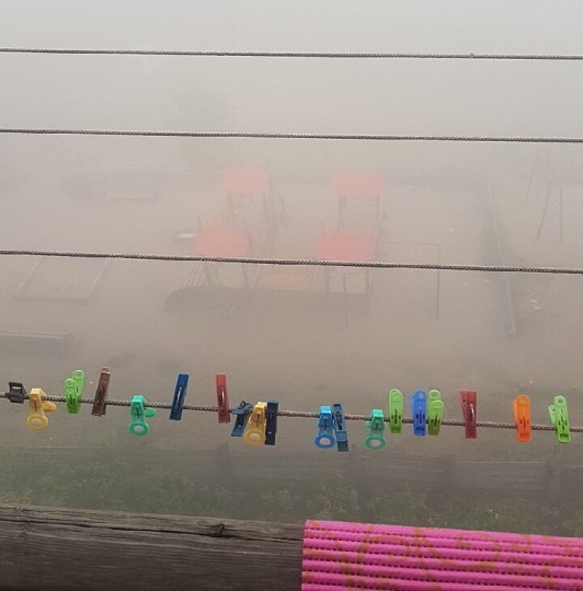 В июле 2019 года к проблемам добавился дым, пришедший в город из леса, где бушуют пожары. 9 августа задымленность достигла такой плотности, что не видно ни солнца, ни придомового двора с балкона.