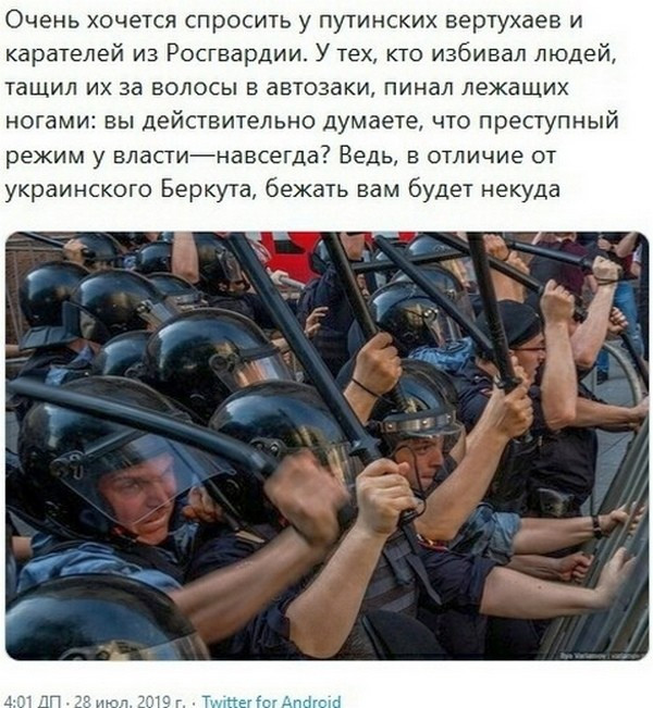 Если нет аргументов, то в дело идут дубинки. Режим показал свое истинное лицо, по сути был дан карт бланш на преступные действия силовикам, следовательно, само государство является преступным.