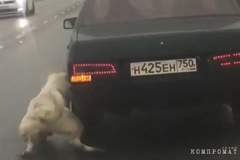 На 37-м километре Киевского шоссе заметили легковой автомобиль, к которому привязана собака, пишет 18 августа РЕН ТВ.