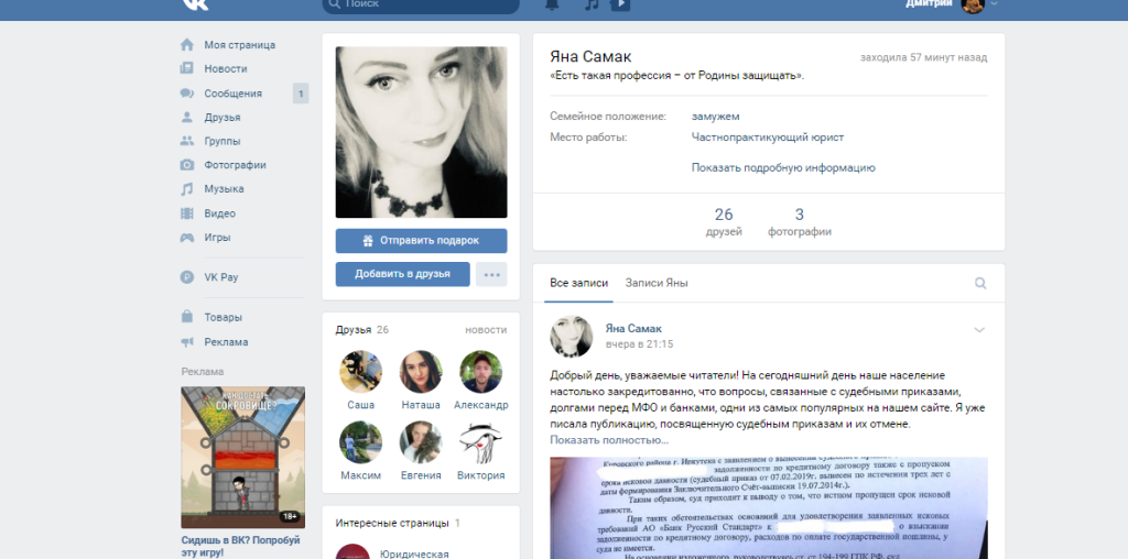 Не привыкла писать на темы, не связанные с юриспруденцией, но сегодня произошло небольшое событие, о котором не могу не написать. На меня создали фейк в соцсетях! Точнее создали его еще 11 августа, но узнала я о его существовании только сегодня.