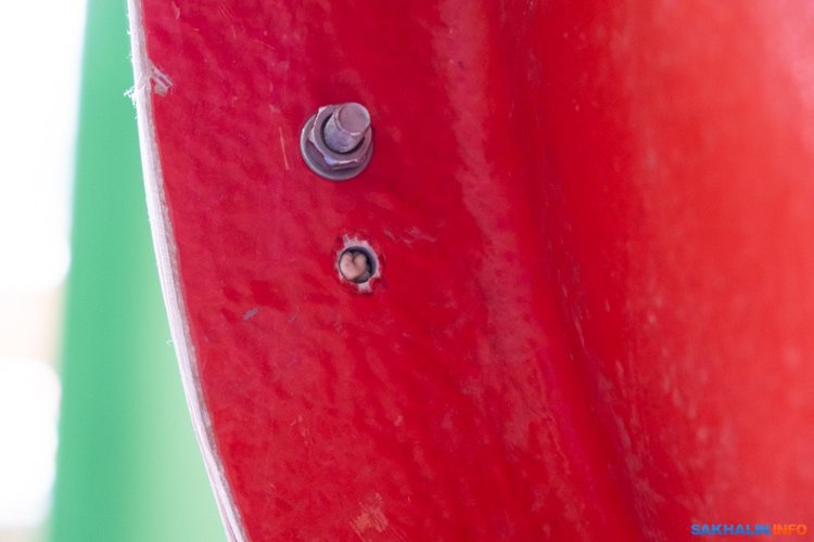 На стыках в горках торчат болты. Даже в детской зоне, почему-то они никак не закрыты, никакими колпачками. Там, где не хватило болтов, торчит жевательная резинка.