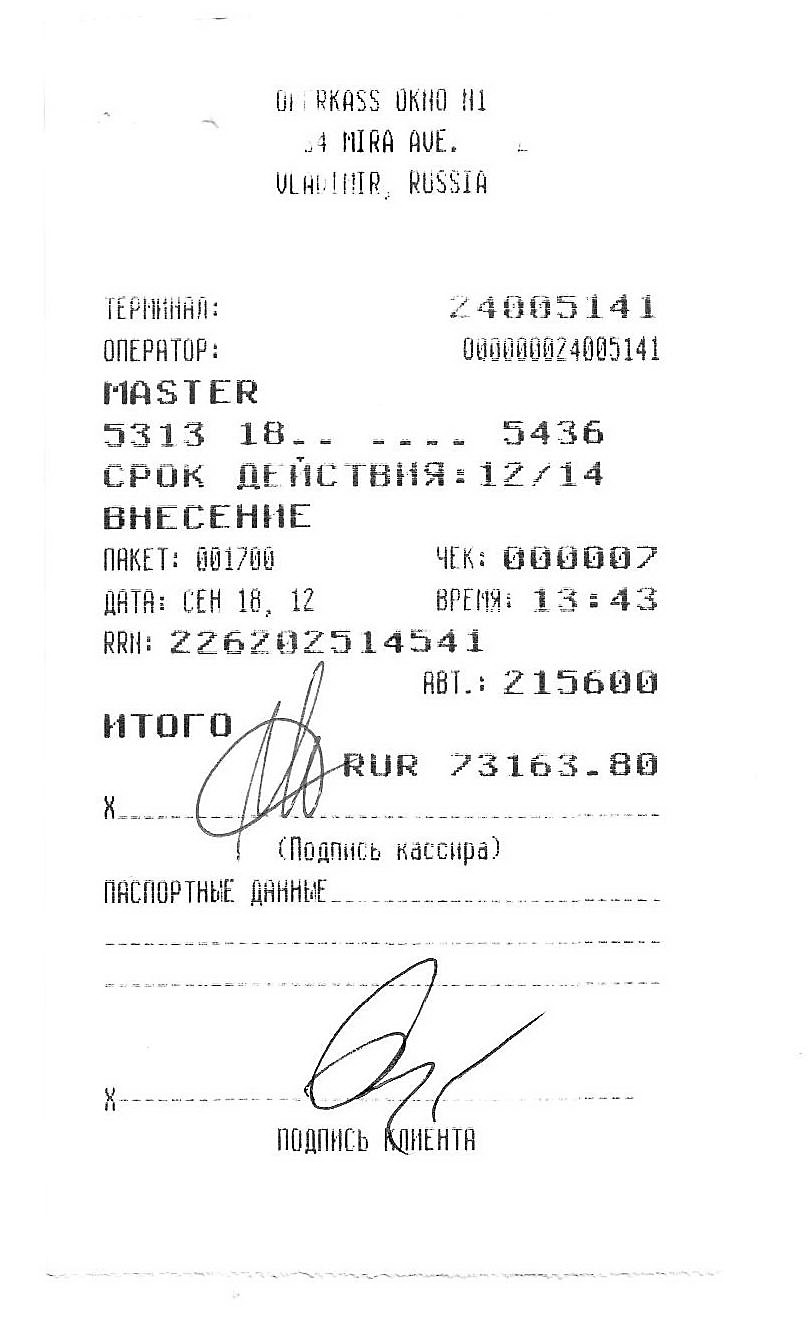 Ну да ладно, Андрею не это нужно было. Подошёл он к девушке, объяснил, что ему нужно получить денежный перевод Вестерн Юнион, она покивала, взяла его паспорт, да дала ему бумажки на подпись. Андрей не глядя махнул ручкой и пошёл на кассу.