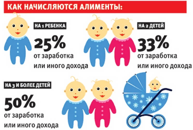 Что касается алиментов на двоих детей, удержание которых происходит через суд, то здесь действуют несколько основных моментов: