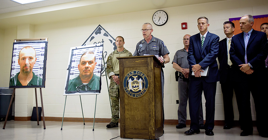 Утром 5 июня в штате Нью-Йорк передали предупреждение всем постам: сбежали два особо опасных преступника. Полиция бесилась: в камерах были обнаружены издевательские записки и карикатуры, адресованные копам. «Желаем вам хорошего дня», — гласила одна такая картинка. Дороги были перекрыты, на границе с Канадой, которая проходит недалеко от Даннеморы, ввели усиленное наблюдение. Даже канадскую полицию подключили к поиску преступников.