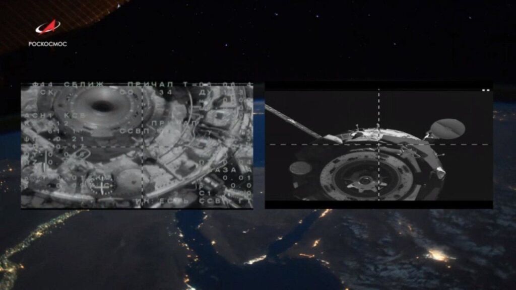 Космическое судно в автоматическом режиме пристыковалось к отсеку служебного модуля «Звезда». Касание состоялось на несколько минут раньше запланированного. Официальное время – 6:08. В настоящий момент экипаж ведет подготовку для открытия переходных люков. Добавим, что «Союз» доставил на МКС 670 килограммов груза.