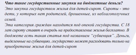 Количество детей-сирот с каждым годом увеличивается, денег государством на покупку для них жилья выделяется все больше, и суммы эти с каждым годом будут только увеличиваться. Государство оформляет квартиры на себя, прописывает туда детей-сирот, и потом, они имеют право приватизировать это жильё.