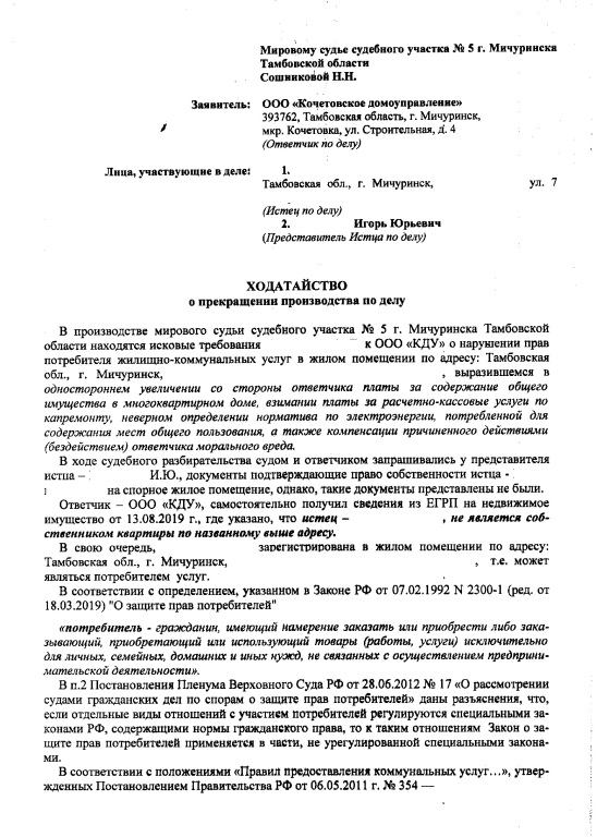 Понимая проигрышность ситуации, УК решила заявить о прекращении производства по делу. Выкладываю их перл.