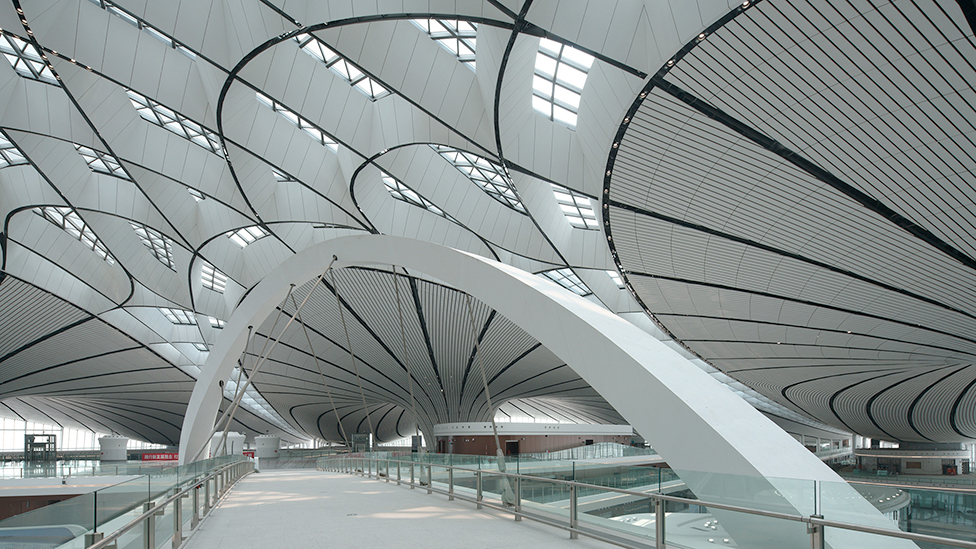 Новый Пекинский аэропорт Дасин — проект архитектора Захи Хадид и её бюро Zaha Hadid Architects (проект был утверждён в 2014 году). Его строительство, начавшееся в 2016 году, потребовалось из-за загруженности действующего аэропорта Шоуду. Дасин расположен на противоположной стороне города и будет обслуживать 72 млн. пассажиров в год к 2025 году: это 630 000 рейсов в год на четырёх взлётно-посадочных полосах. Кроме того, он спроектирован с учётом потенциального расширения и рассчитан на 100 млн. пассажиров, 4 млн. тонн грузов и 880 000 рейсов в год