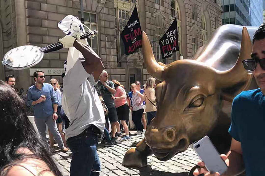 И тут пиндосы всех надули! Если разбить банджо об рога бронзового быка таких размеров - разве могут у него треснуть рога?