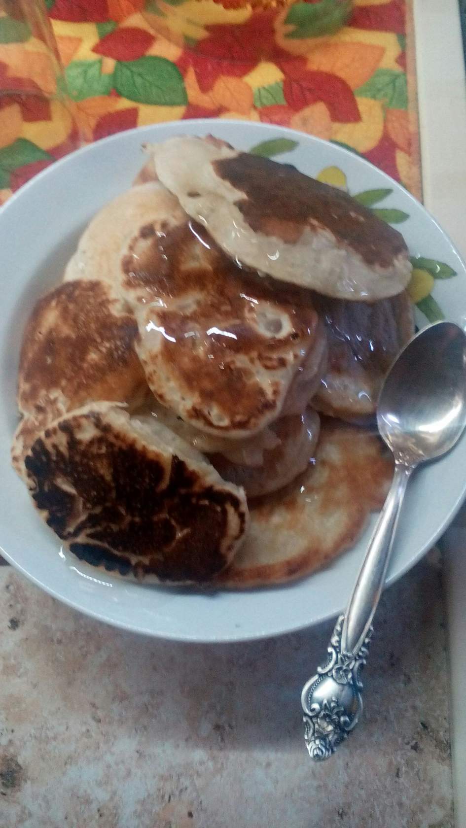 Затем (ох и люблю же я это слово), поставить на огонь сковороду и добавив растительное масло, с помощью маленького половника или ложки заливать на нее небольшими порциями тесто, которое будет поджариваться формируя будущий оладик, когда тот поджарится с одной стороны, его надлежит поджарить и с другой. Процесс приготовления оладьев довольно занимательный и несомненно понравится детям.