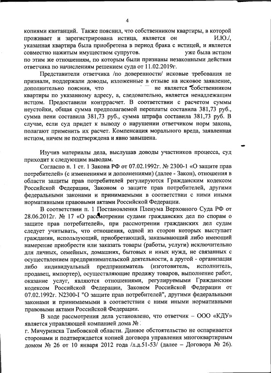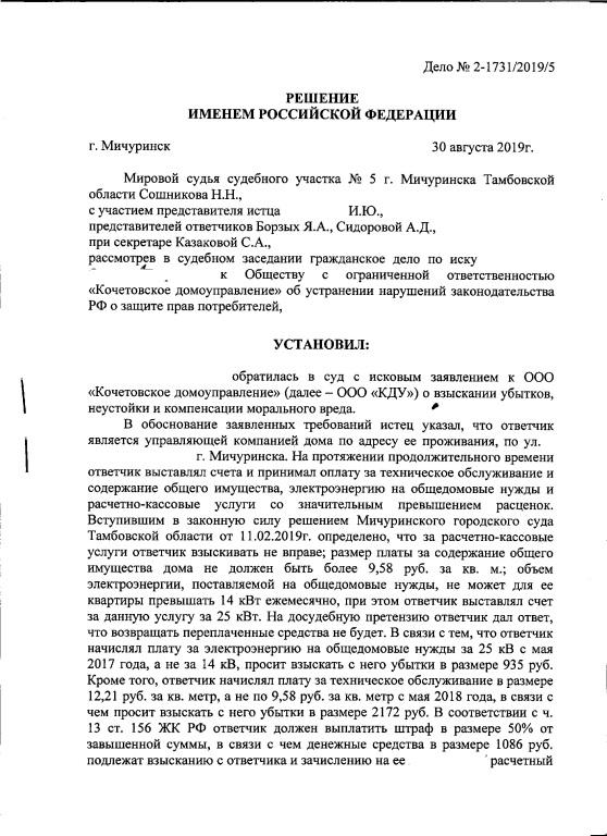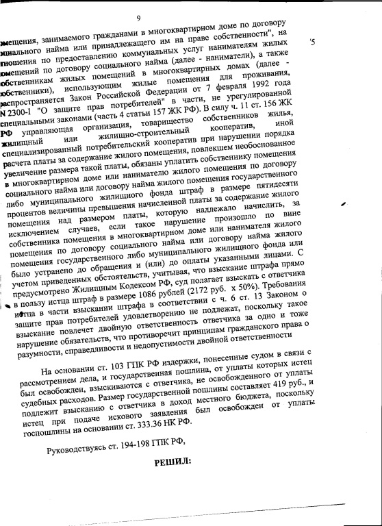 Не совсем в решении я согласен. Например, штраф суд взыскал не в том объёме, в каком нужно было. Но обжаловать не буду. Потому, что уважаю судью за её мужество. Зная, какие силы стоят за этой УК, понимаю, что и такое решение дорогого стоит. Тем более, что речь всего о паре тысяч.