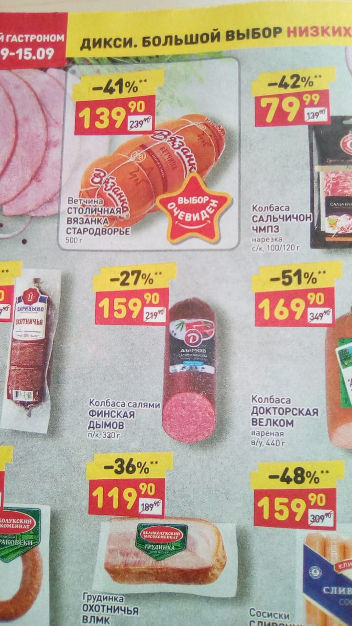 Цена на эту же колбасу в каталоге
