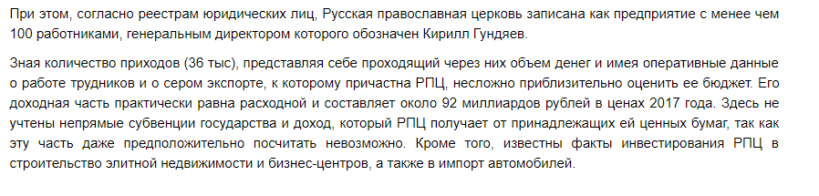 Лукавит митрополит! Основной заработок РПЦ -- это связь с криминальными структурами по отмывания денег!