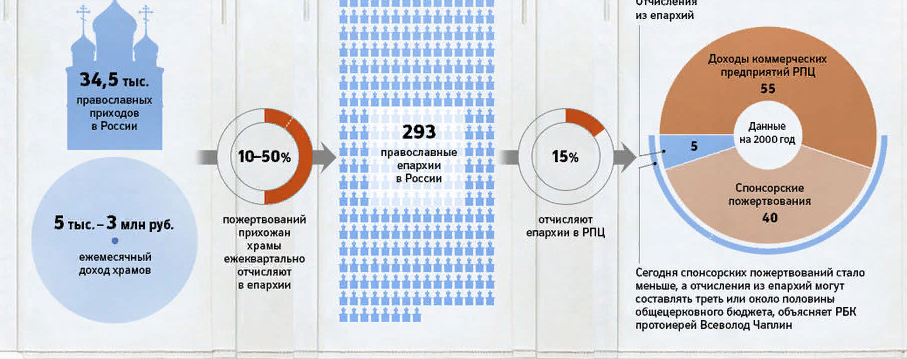 Практически у всех Московских попов есть бизнес. Причем этот бизнес считается церковным и налоги не платит. И не надо думать, что это торговля свечками. Это может быть и туристское агентство и риэлтерская контора и салон по торговли автомобилями и т.д. В эту секту ни у налоговой ни у прокуратуры доступа нет, поэтому поп мог смело назвать любую цифру, всё равно никто не проверит. На самом деле там триллионы крутятся.