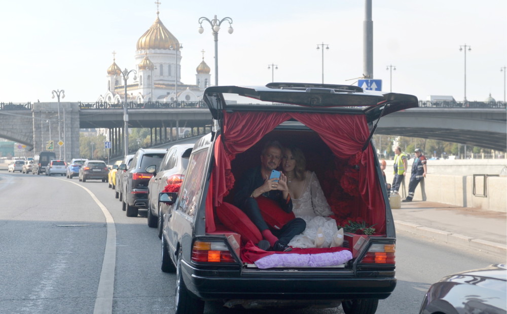 Свадьба Собчак и Богомолова состоялась 13 сентября в Москве. Молодые решили эпатировать публику и приехали к загсу на катафалке.