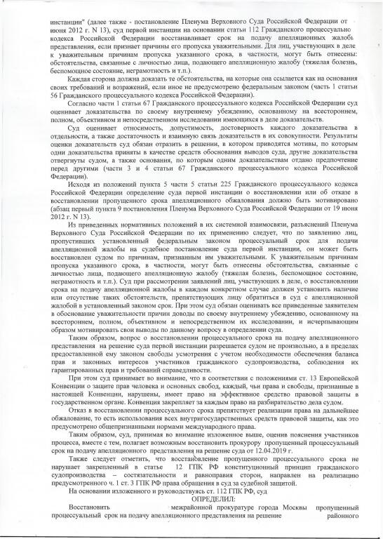 Самое смешное, апелляционное представление подано через почти 4 месяца и как легко суд обосновывает восстановление срока подачи