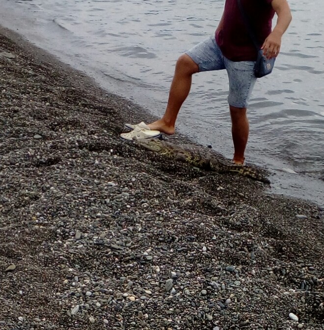 Шок! В Адлере из моря вышел крокодил!