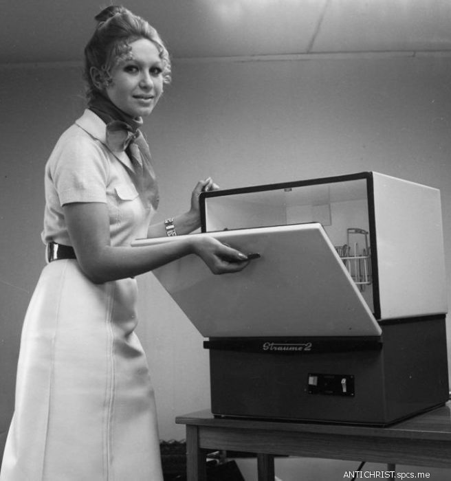 Советская «посудомойка» была настольной и могла вместить в себя одновременно следующий набор столовых приборов: двенадцать тарелок, четыре стакана, восемь ложек, четыре вилки и четыре ножа.