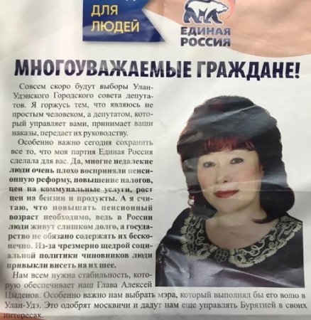 Народ Бурятии возмущен такой предвыборной листовкой, вернее, тем, что там написано. Просто нагло, цинично и бессовестно.