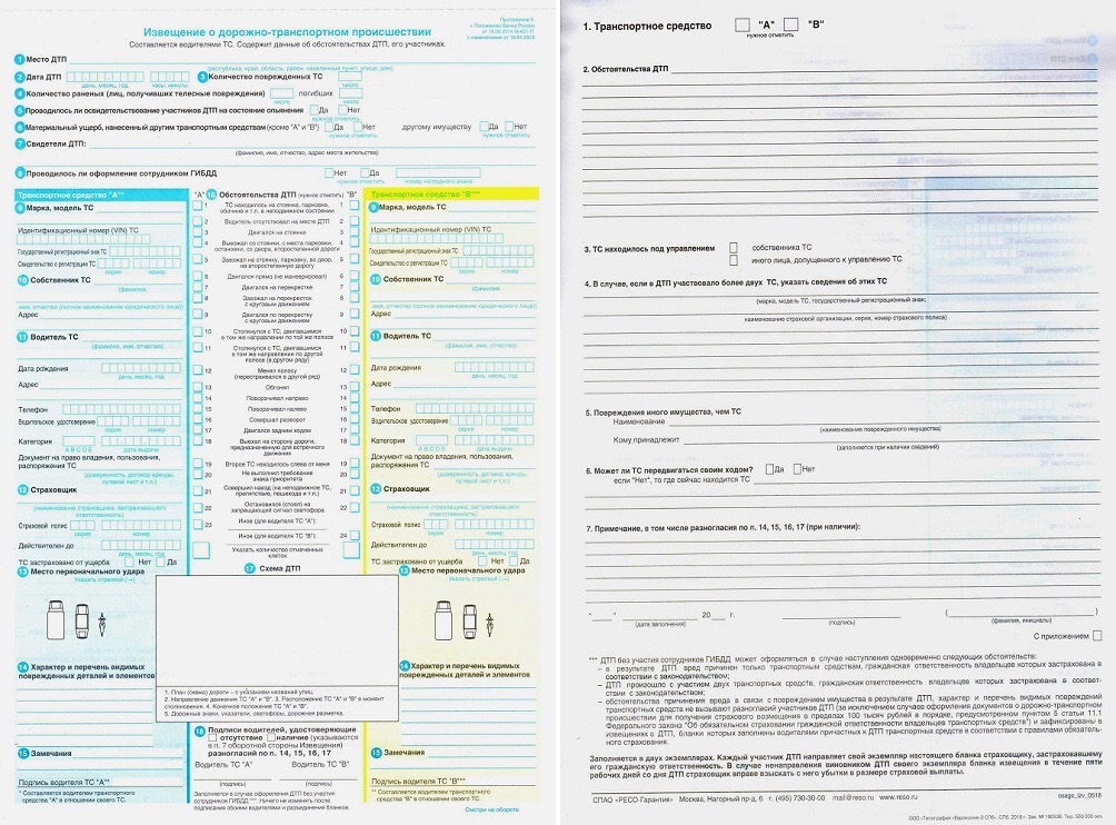 Титульная сторона заполняется совместно, после этого страницы разделяются, и каждый участник ДТП описывает свое видение ситуации.