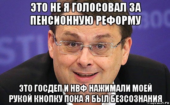 Федоров, конечно, людям мозги промыл знатно. Путин бедный, Конституцию поменять не может. Вы сами-то слышите себя? Какой госдеп? Какой референдум? Ну федоров говорил, что бесплатный проезд жителям подмосковья отменили в Америке)