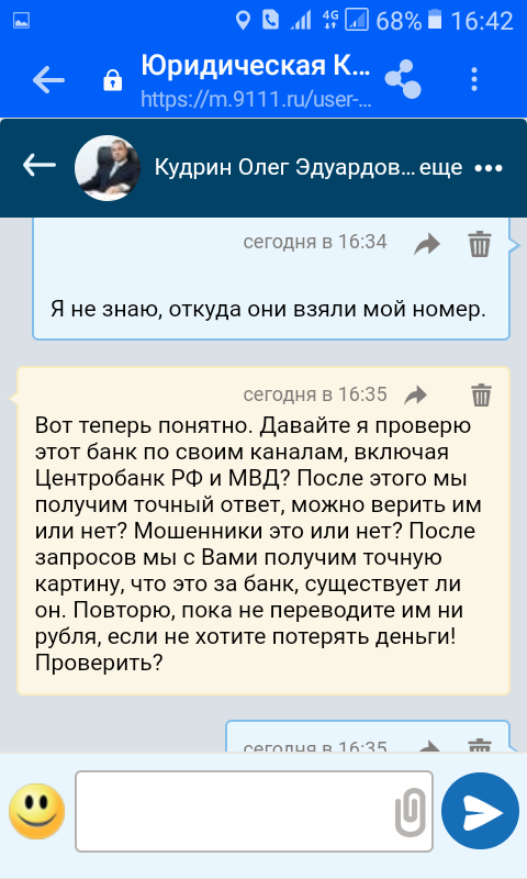 Зря вы Даниил наговариваете на Олега Эдуардовича. Он отличный юрист! Лично мне он очень помог с крупным кредитом. Он даже на суд приезжал ко мне (из Тамбова в Пензенскую обл) и за символическую сумму. И благодаря Олегу даже юридические расходы вернул банк. Короче, я остался в плюсе! Если вы не поверите моим словам то сами можете посмотреть его страницы в ОК и Вконтакте.