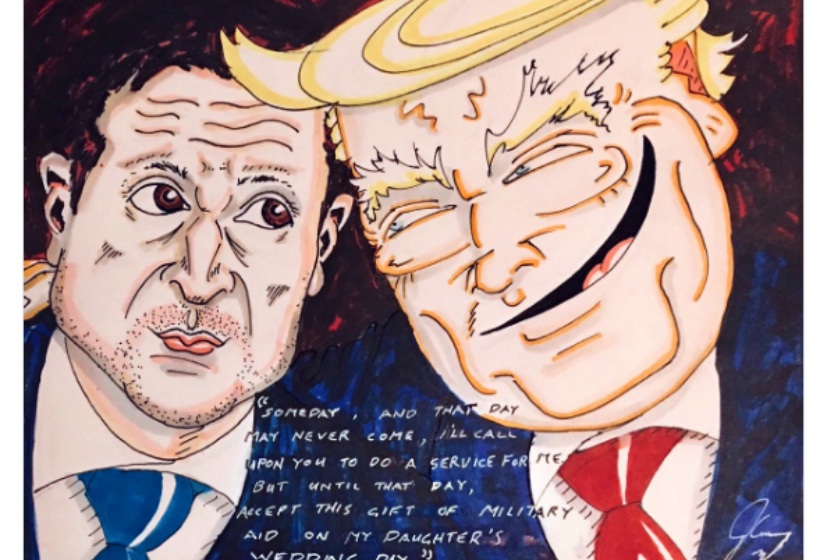 На рисунке Президент США Дональд Трамп, обращаясь к Владимиру Зеленскому, цитирует слова главного героя фильма «Крестный отец»: