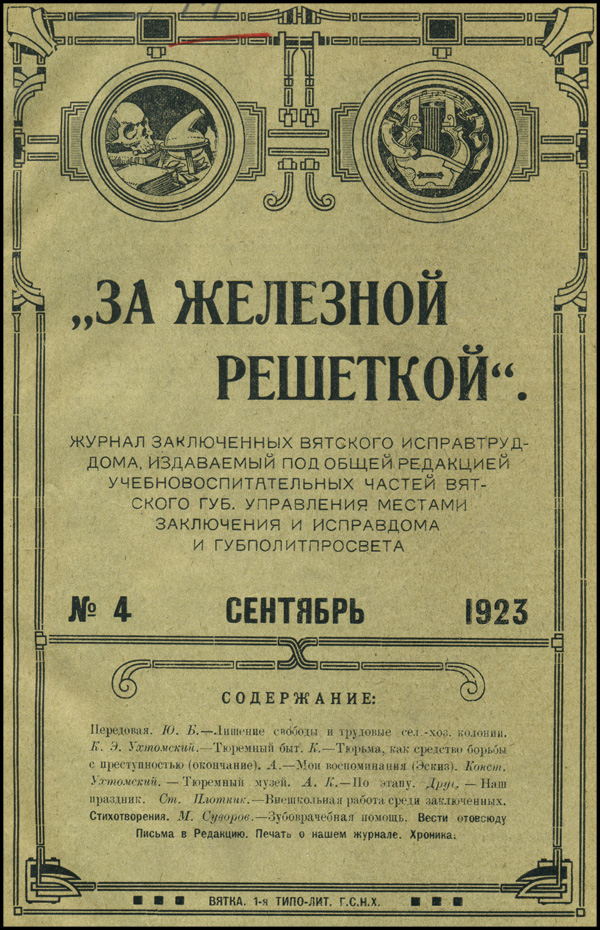 При таком творческом сотрудничестве администрации исправительных учреждений с поднадзорным контингентом верится в искренность стихотворения «Воспитателю», опубликованного в журнале заключенных Вятского исправительного трудового дома «За железной решеткой»: