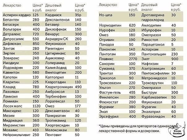 Цены на самые распространенные лекарства и их отечественные аналоги
