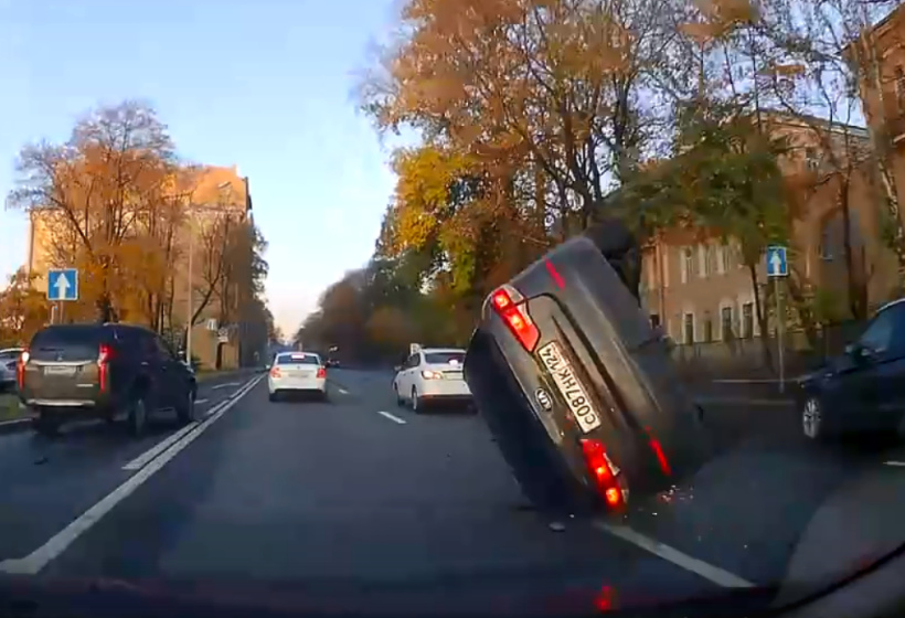В Москве гонщики протестировали новый Chevrolet Camaro, но не справились с управлением и на полной скорости влетели в скромно стоящий трактор