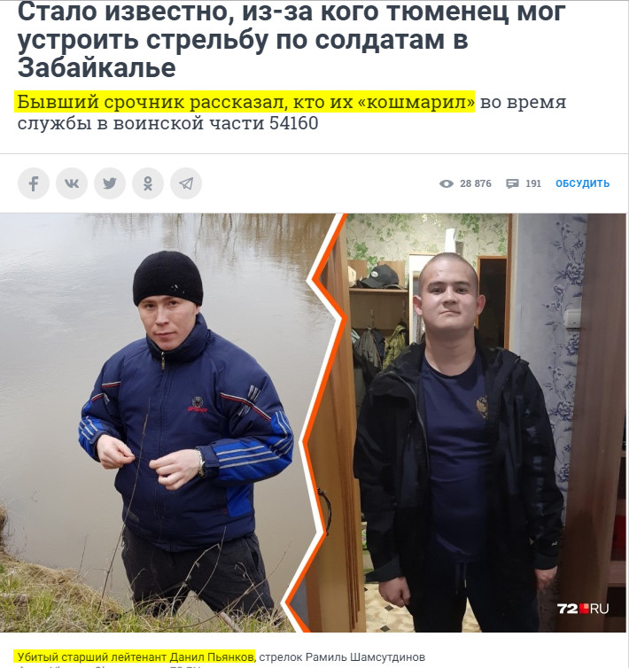 Говорят что сейчас дедовщины нет. А ведь этот мальчик не просто так взялся за оружие. Как страшно отправлять сыновей в армию. Жаль мальчишек! Соболезную семьям!