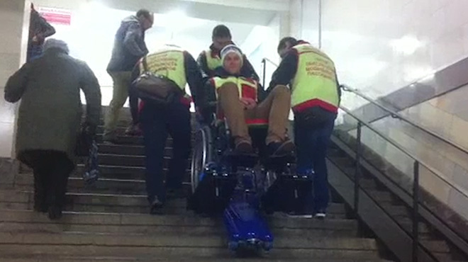 На станции «Невский проспект» неизвестный разломал транспонтер для инвалидов