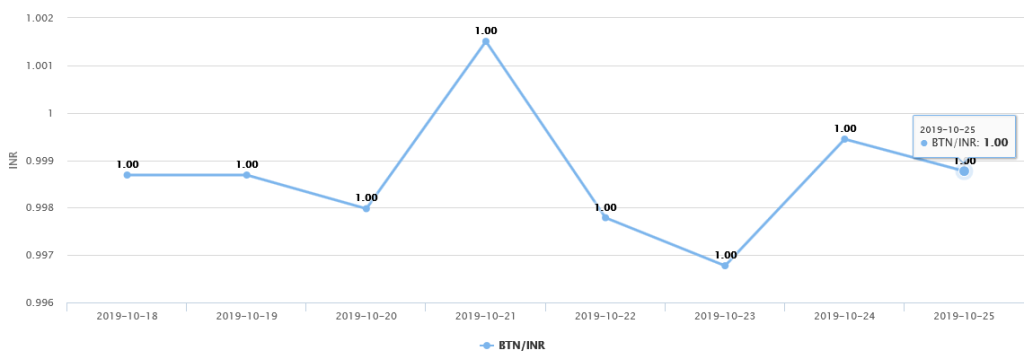График изменений курса 1 бутанского Нгултрума к индийской рупии.