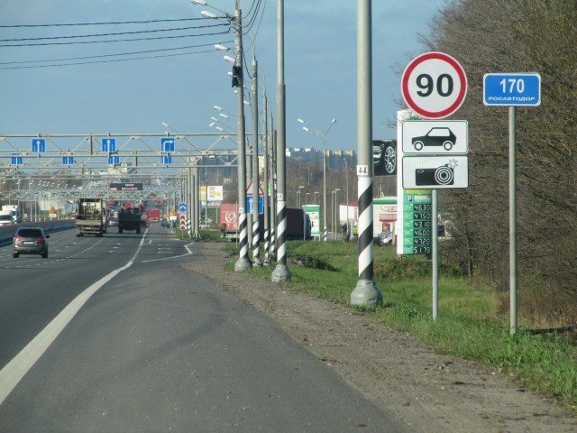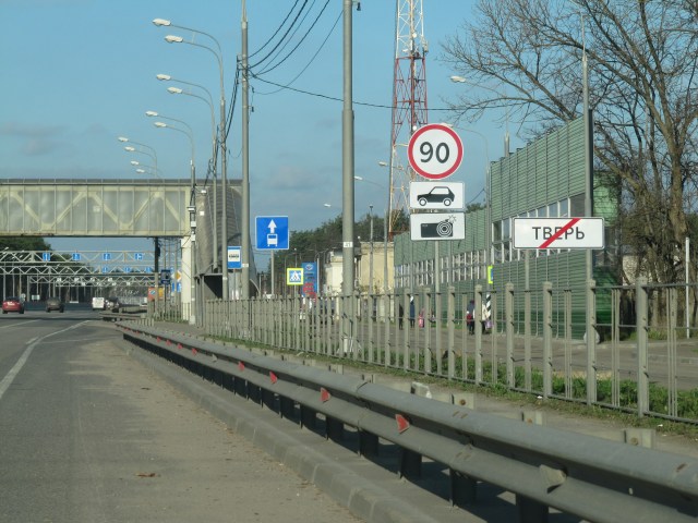Дорожный знак 3.24 «Ограничение максимальной скорости» стоит после дорожного знака 5.24.1 «Конец населенного пункта» на белом фоне. Город Тверь у наших кудесников не кончился и на выезде стоит ещё один дорожный знак 5.26 «Конец населенного пункта» на синем фоне, и на этом участке максимальная скорость ограничена теми же 90 км/час. Хорошо не понимать ПДД и ставить дорожные знаки по своему усмотрению.