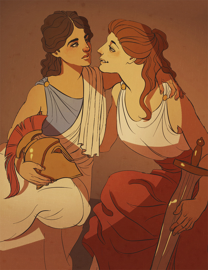 Герой Тезей спал, а рядом с ним сидела богиня любви Афродита. Она сказала Артемиде: