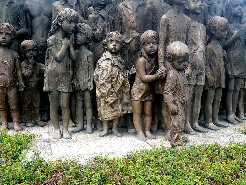 Подростки и совсем маленькие детишки. Они перешептываются, прячутся за спины, не поднимают голову. Испуганы, растеряны, с распахнутыми глазами, они ждут нашей помощи. В поле, возле села Лидице, близь Праги, стоит скульптурная группа из бронзы.