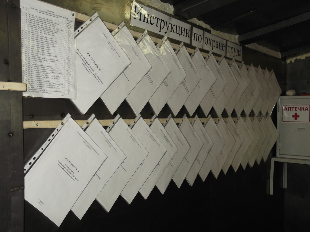8.Изготовление и оформление инструкциями по ОТ уголка по охране труда в производственном цеху. Изготовление наглядной агитации по безопасному производству работ и пополнение.