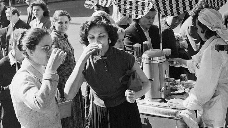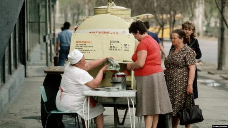 Источник: Кадр из фильма «Операция «Ы» и другие приключения Шурика»Кроме автоматов, функционировали торговые точки по продаже газировки человеком. Стакан воды с сиропом стоил в такой точке на 1 копейку дороже, то есть 4 копейки. Стакан воды без сиропа стоил столько же, то есть 1 копейку.