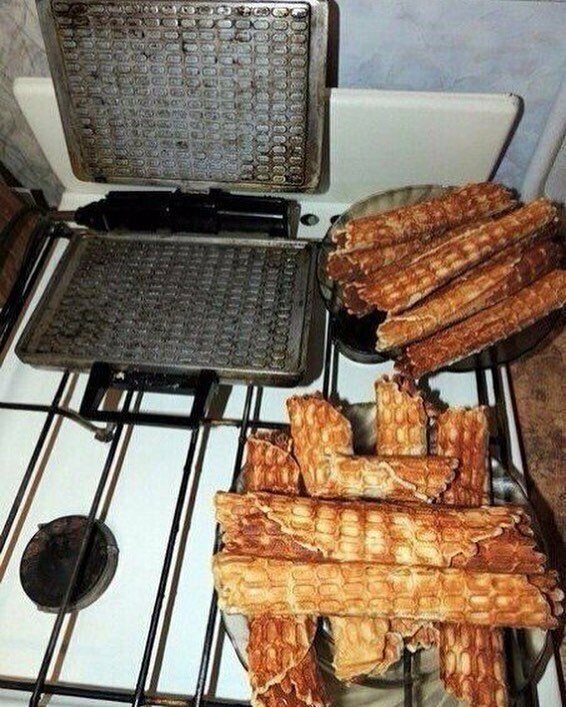 Трубочки с кремом и на улице продавали, сначала крем был во всей трубе, потом экономить начали, чуток с одной стороны, чуток с другой, в середине фигушки.