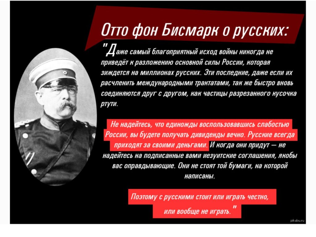 Увы, к Отто фон Бисмарку мало кто сейчас прислушивается... а нужно бы!