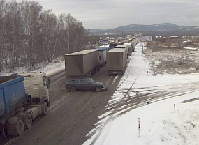 Кроме того, на дорогах в горных районах сейчас образовался гололед от наката. Некоторые фуры не могут двигаться в гору.