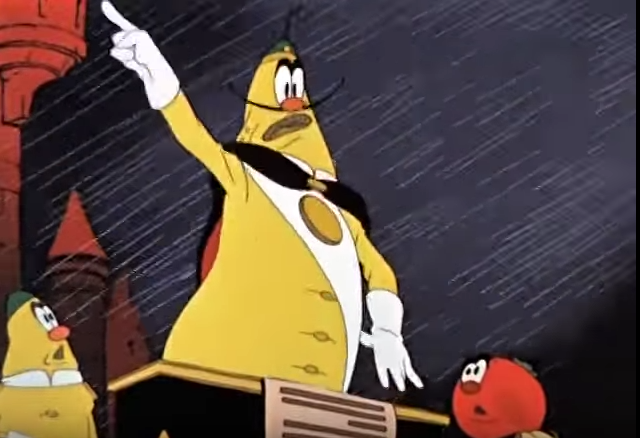 Когда отцу и сыну удалось встретиться ненадолго Чиполлоне говорит: «Тюрьмы для тех, кто ворует и убивает, но у принца,, Лимона'' всё наоборот: воры и убийцы у него во дворце, а в тюрьме честные граждане».Что то знакомое в этом эпизоде сюжета сказки не так ли?