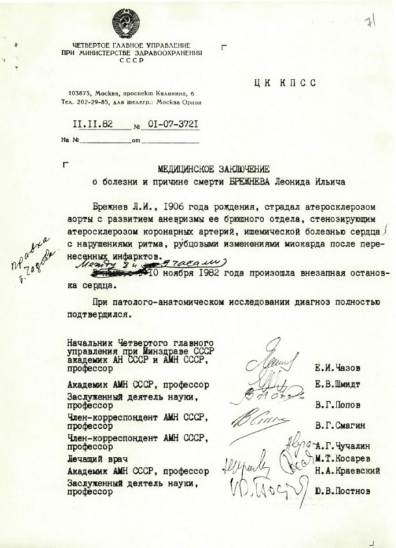 Медицинское заключение о болезни и причине смерти Л.И. Брежнева.