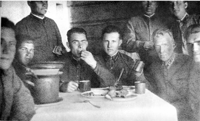 Курсант и политрук танковой роты Л.И. Брежнев среди товарищей по курсам моторизации и механики Красной Армии.