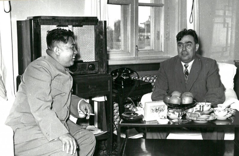 Л.И. Брежнев и руководитель КНДР Ким Ир Сен во время пребывания в КНДР делегации КПСС.
