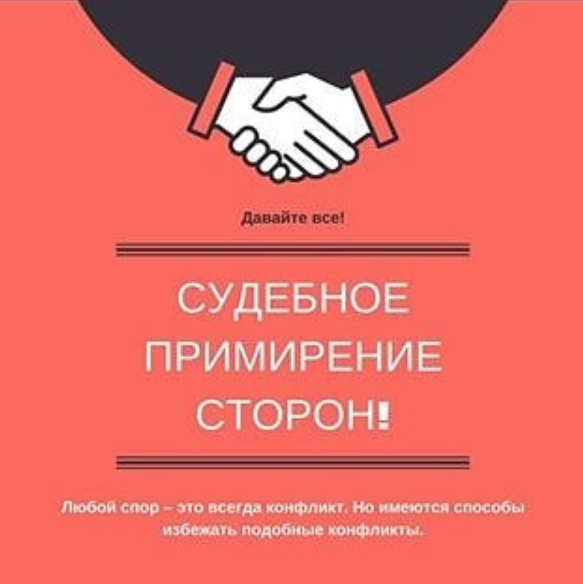 В России водится новая практика. В наших судах начнут работать специальные примирители, которые помогут сторонам судебного процесса найти общий язык. 22 октября 2019 года пленум Верховного суда РФ рассмотрел проект регламента судебного примирения. А 31 октября 2019 года Постановлением пленума Верховного суда РФ был утверждён Регламент проведения судебного примирения. Полный текст Постановление пленума ВС РФ от 31.10.2019 года о вышеуказанном Регламенте здесь. Подробнее ➤