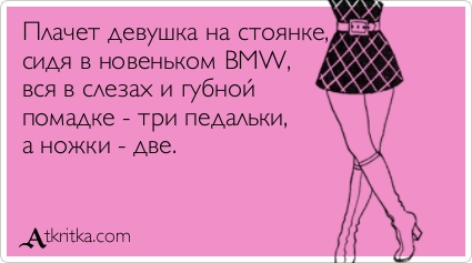 Автоматическая коробка передач для блондинок... Для них бы вообще нужно оставить только одну педаль тормоза, а все остальные рычаги управления доверить компьютеру. Он же не станет подкрашивать губы на ходу...