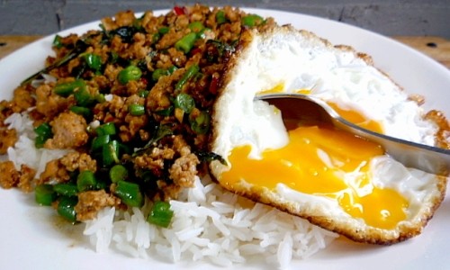 Пад ка прао может и не завоевать моментального всеобщего признания, но это мясное жаркое со специями и травами – любимый вид быстрой закуски многих тайцев. Ka Prao означает базилик священный, неотъемлемый ингредиент блюда. Его листья жарят с рубленной свининой, курятиной или морепродуктами, а также измельченным чесноком, перцем чили и, иногда, бобами. Сверху блюдо поливают рыбным соусом и посыпают щепоткой сахара. Подают это все с рисом и обычно сверху кладут поджаренное яйцо.