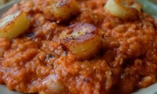Горячее, сладкое и пряное блюдо рэд-рэд сочетает в себе бобы с жареными овощными бананами и zomi (красное пальмовое масло). Ключевым моментом блюда является один из красных ингредиентов: zomi обладает насыщенным, пикантным вкусом ореха. Лук и красный перец чили жарят в этом масле и добавляют к бобам вигны китайской, сверху добавляют еще zomi и gari (сброженный и высушенный порошок маниоки). Овощные бананы (koko, они тоже красные), режут кусочками, солят и жарят во фритюре, а затем добавляют к бобам.