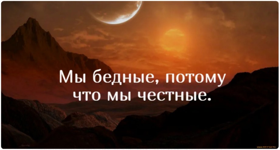 Индейская поговорка гласит: "Мы бедные потому что мы честные" .